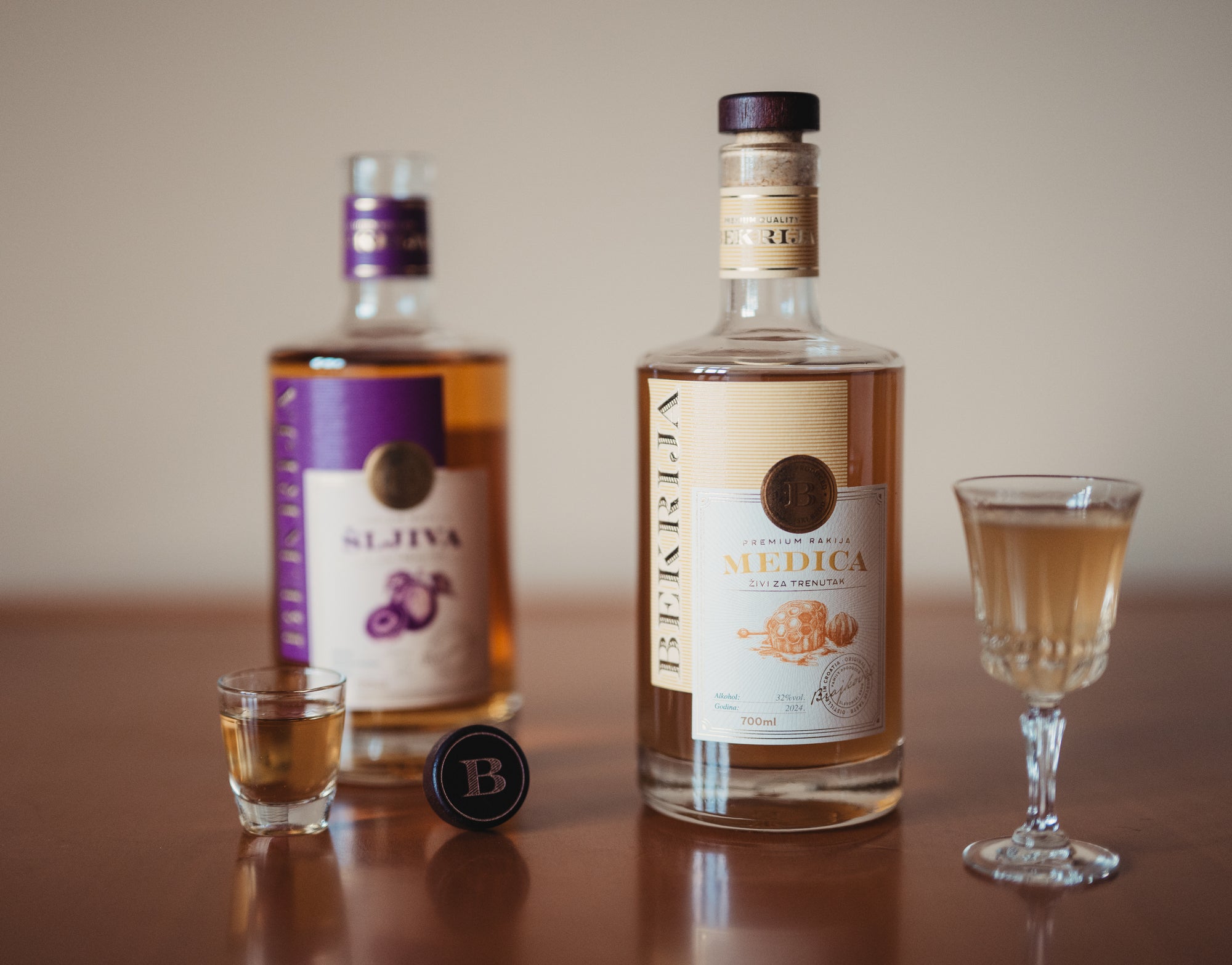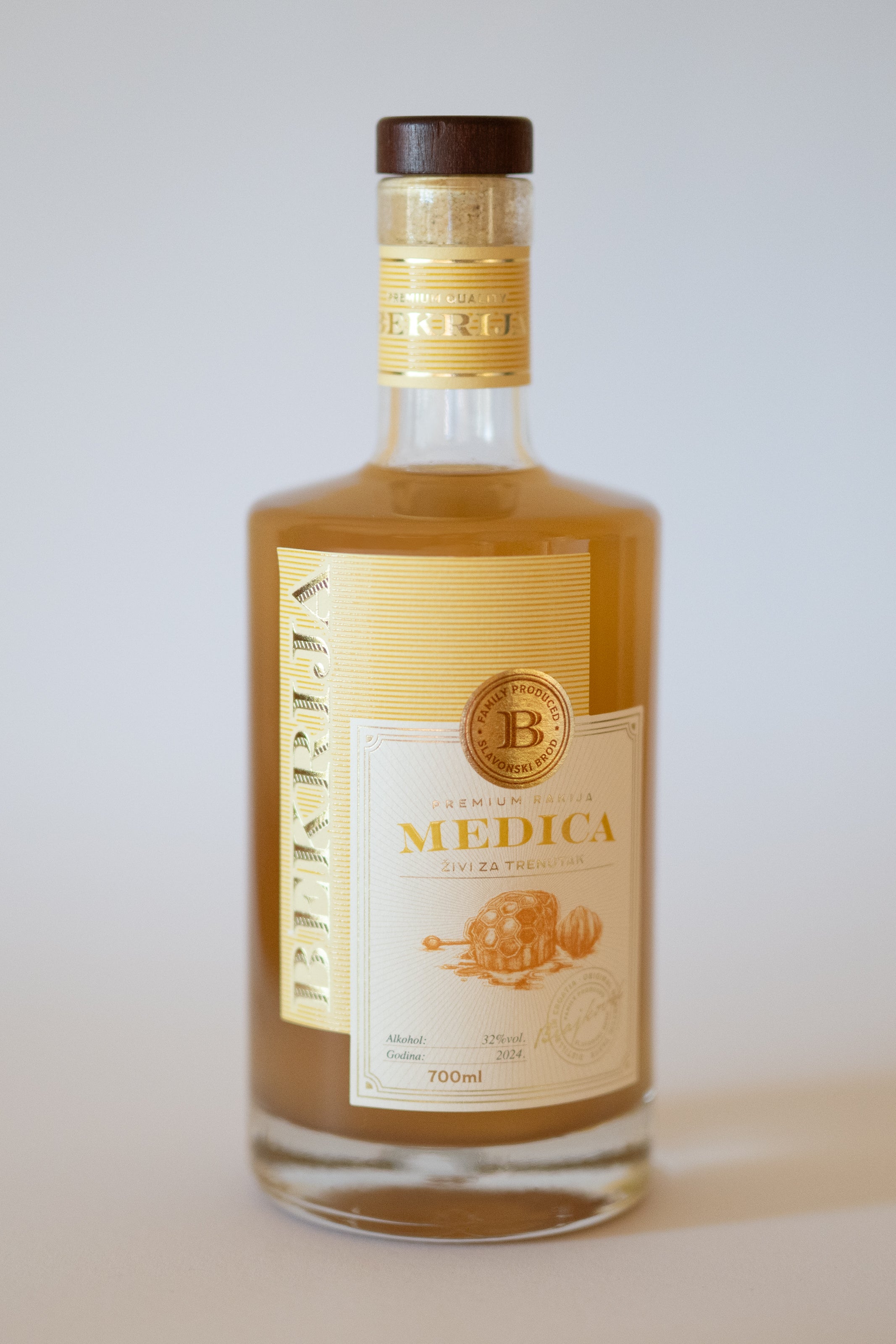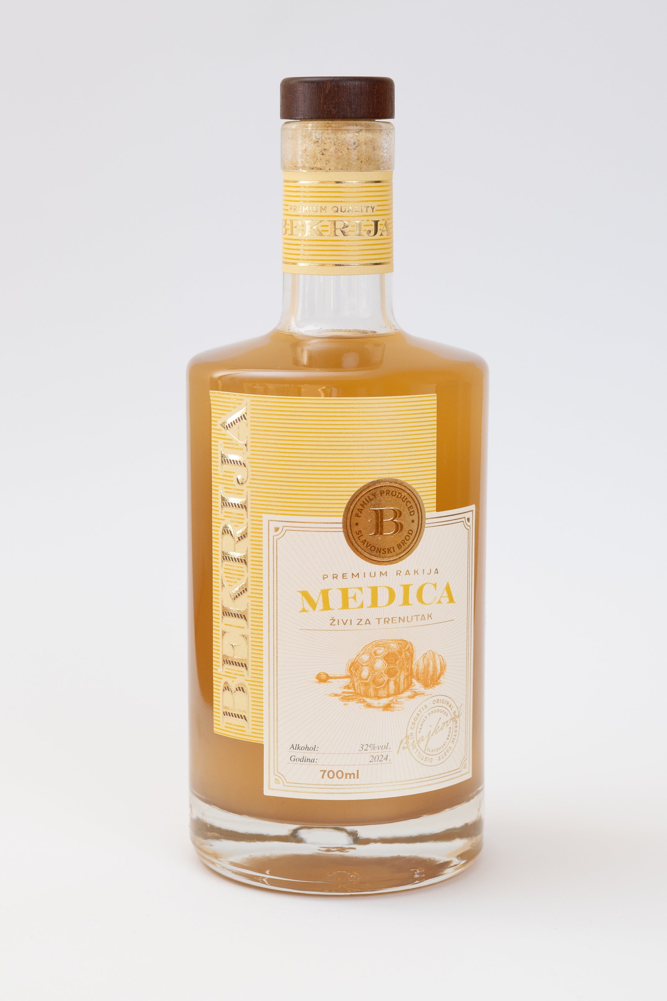 Bekrija Medica rezultat je spoja prirodnog meda iz našeg šljivika i rakije od kruške sorte Citronka, sorte poznate po svojoj elegantnoj aromi i profinjenom voćnom karakteru.